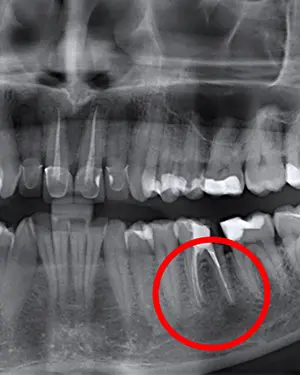 Če občutite bolečino ali otekanje zoba, ki je že endodontsko zdravljen, je potrebno poiskati pomoč stomatologa. Stomatolog bo v tem primeru naredil RTG posnetek tega področja (zoba in okoliške kosti) ter opravil klinični pregled, kakor bi odločil, ali je potrebno opraviti apikotomijo. Koreninski kanali so zelo kompleksni, še posebej na vrhu korenine. Včasih po endodontskem posegu zaostanejo infektivni ostanki znotraj kanala. To lahko privede do kasnejše ponovne okužbe korenine in potrebe za apikotomijo. Pri apikotomiji se odstrani vrh korenine skupaj z vnetnim in inficiranim tkivom, na kar se s polnjenjem kanala zapečati vrh korenine. Apikotomija je danes vse bolj pogost poseg, saj pacientom omogoča ohranjanje zob, katere ni možno zdraviti z endodontsko terapijo in katere bi drugače morali izpuliti. Šteje se za majehn kirurški poseg, traja pa od 30 do 60 minut, odvisno od tega za katero regijo in zob se gre. Posegi na sprednjih zobeh so praviloma krajši, med tem ko so posegi na spodnjih kotnikih najdaljši.